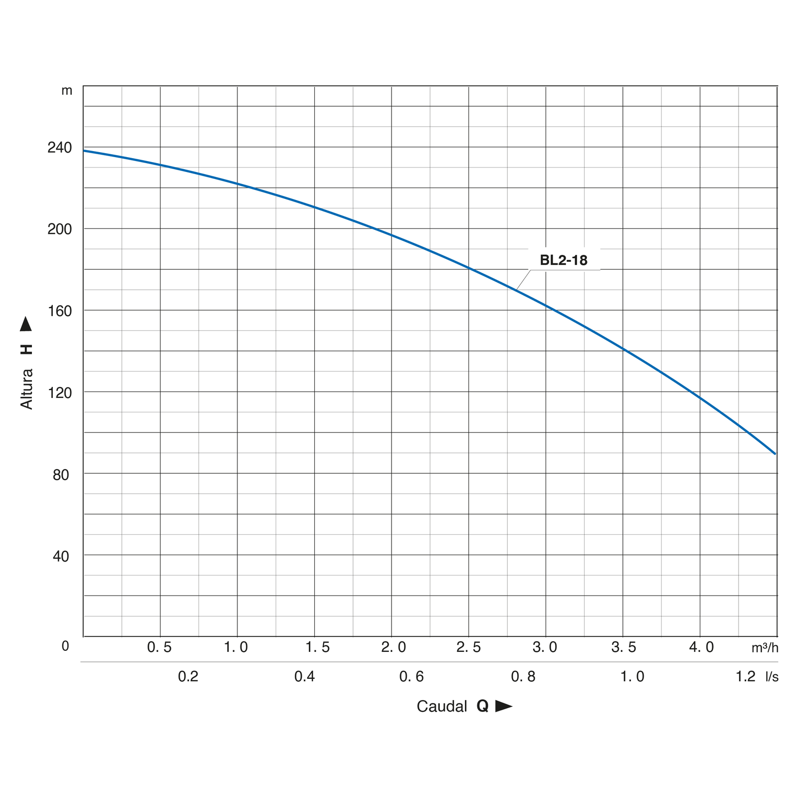 | Rango de operación | 238 ÷ 94 m / 16.7 ÷ 75 l/min |