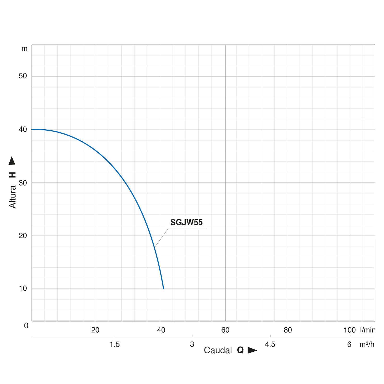 | Rango de operación | 38 ÷ 13 m / 16 ÷ 40 l/min |