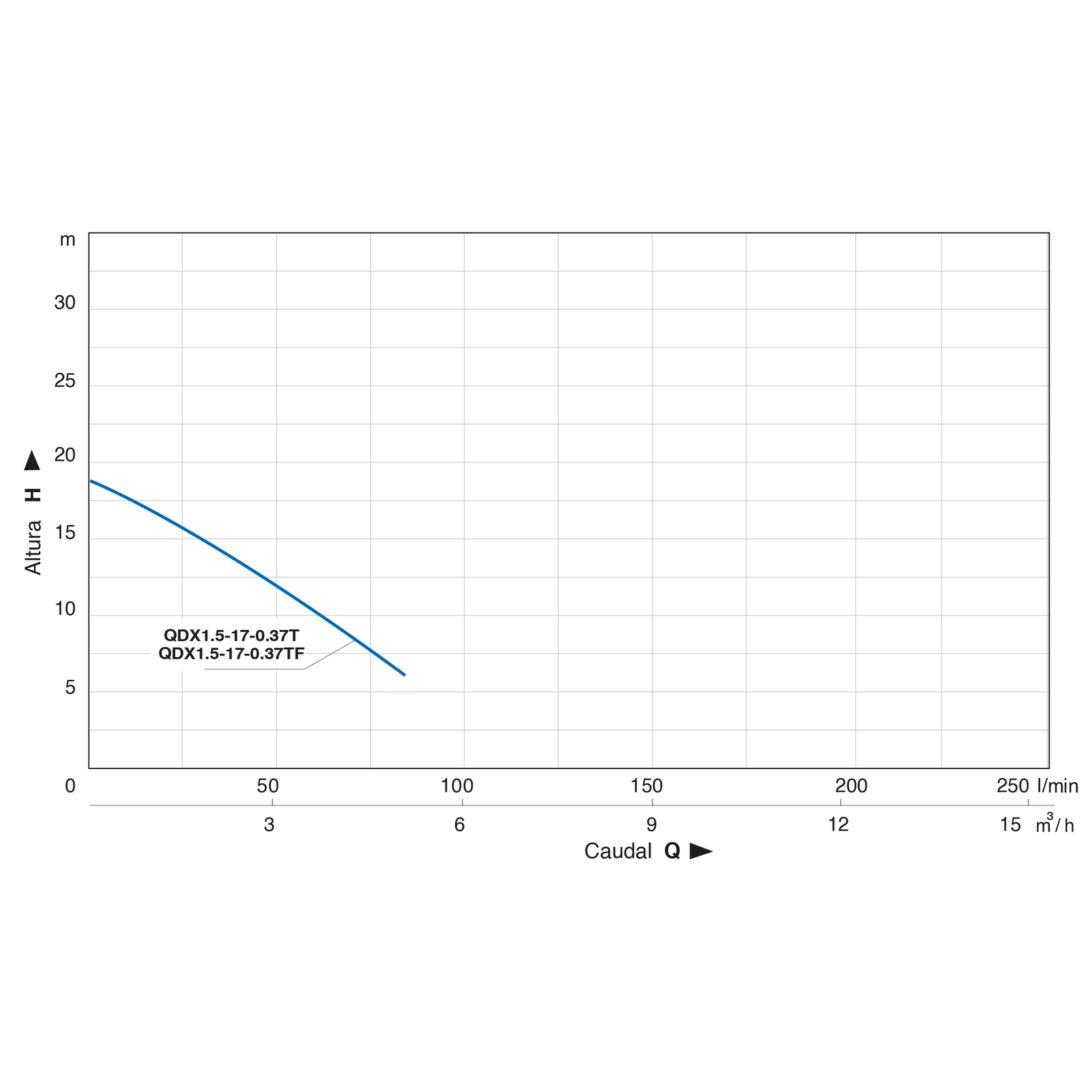| Rango de operación | 17 ÷ 6 m / 17 ÷ 80 l/min |