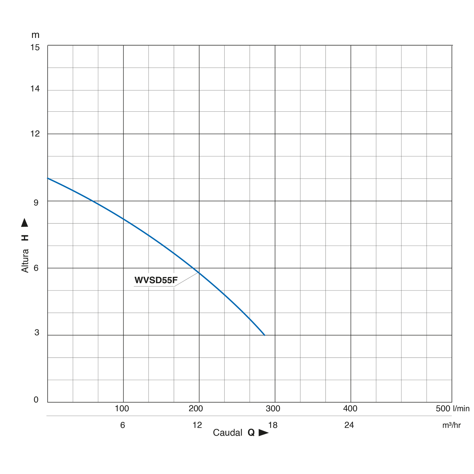 | Rango de operación | 9 ÷ 3 m / 60 ÷ 280 l/min |