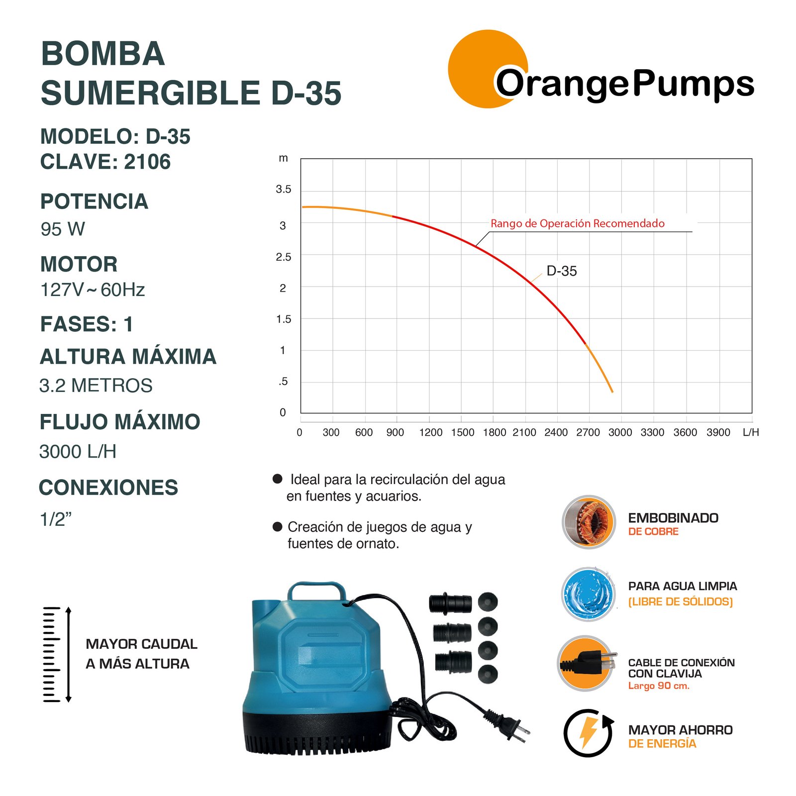95 W – MOTOR 127V – 60HZ 1F – ALTURA MÁXIMA 3 MTS – CONEXIONES 1/2″ – 3000 L/H
