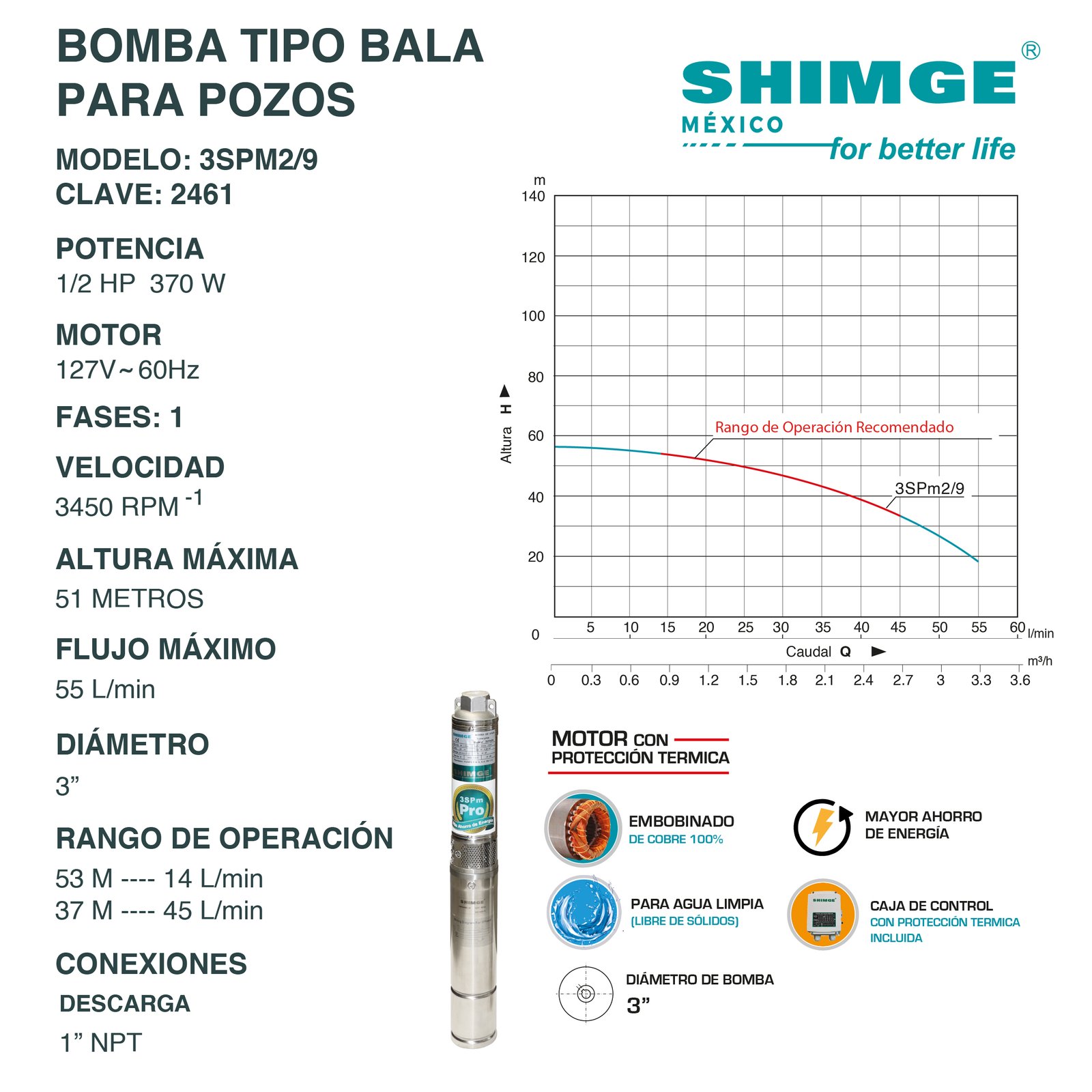 1/2 HP – MOTOR 127 V – 60HZ 1F – ALTURA MÁXIMA 51 MTS – ALTURA MÍNIMA 20 MTS – DESCARGA NPT 1″ – 55 L/min